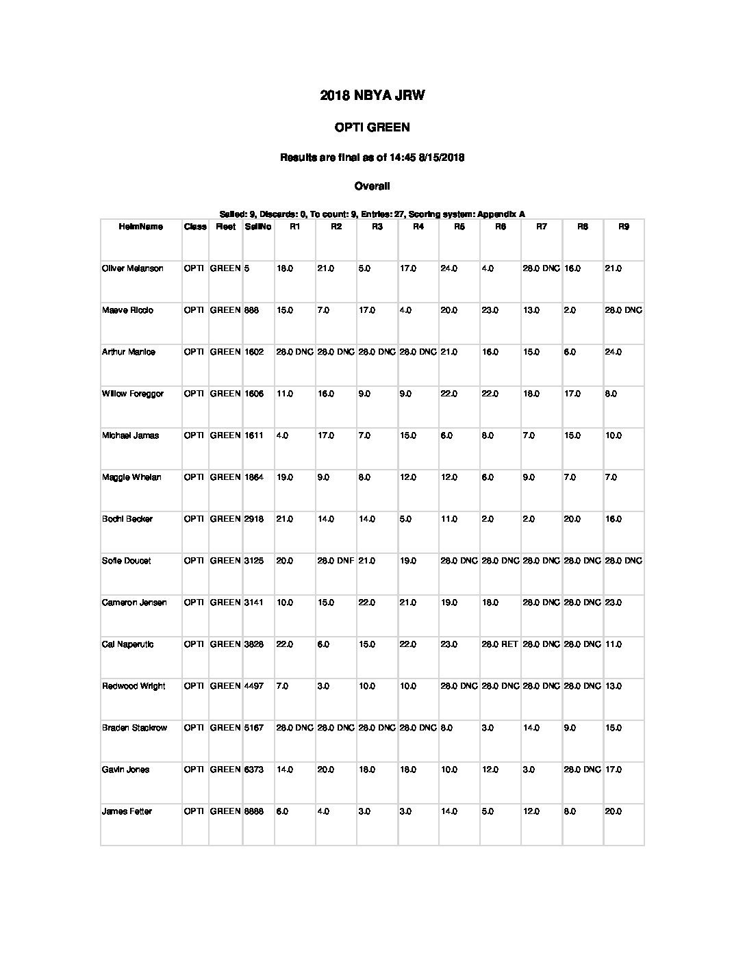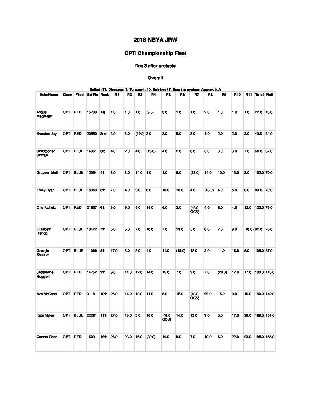 2018 Junior Race Week Results